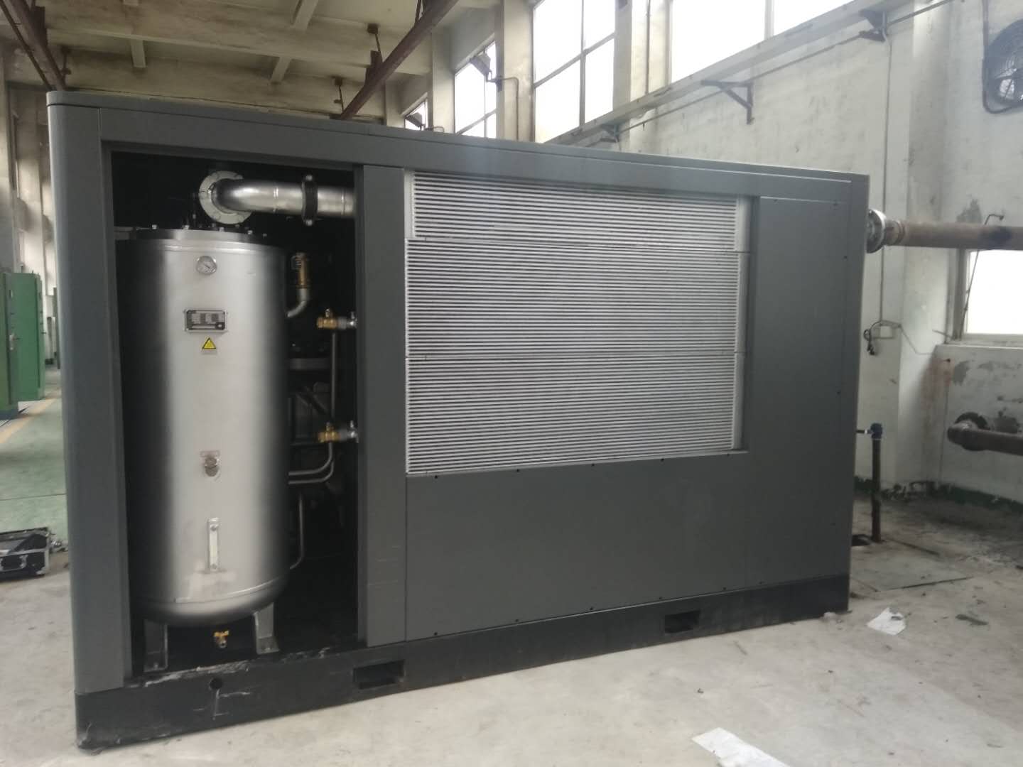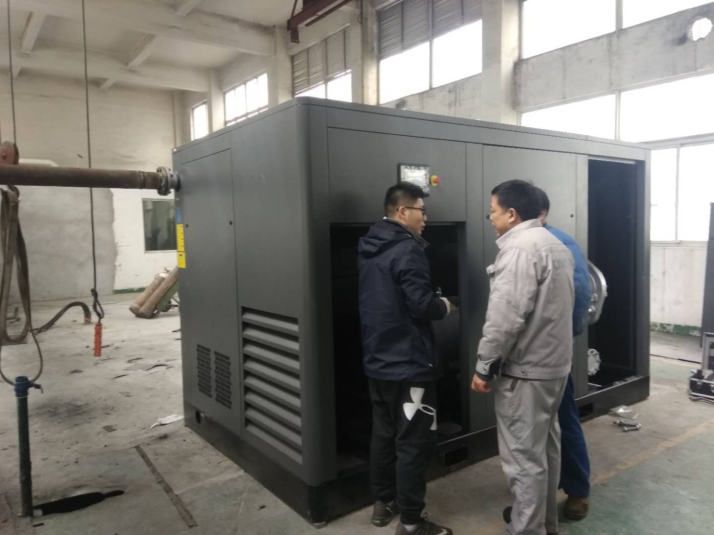 該客戶是做集裝箱的,是重點(diǎn)企業(yè)單位,在江蘇地區(qū)和全國(guó)范圍都設(shè)有工廠。 一直在使用國(guó)進(jìn)口品牌的空壓機(jī),也是變頻機(jī),不過客戶感覺是不省電的,而且故障率也不低